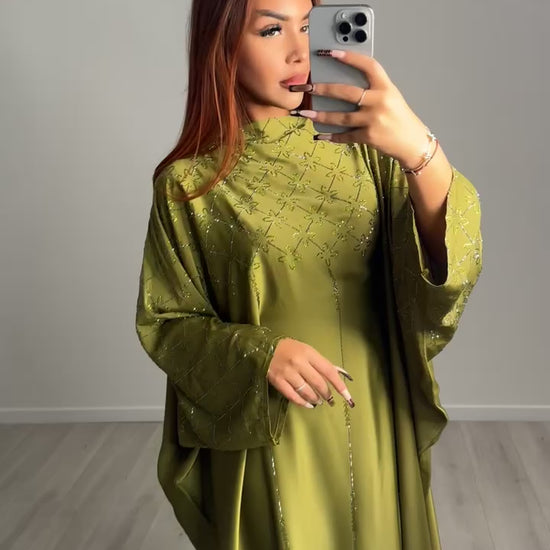 Nos abayas, sublimées par l’éclat discret de strass finement appliqués, se distinguent par leur fluidité exceptionnelle et leur toucher soyeux. Le tombé, précis et harmonieux, accompagne la silhouette avec une grâce naturelle.Chaque modèle témoigne d’un savoir-faire artisanal parfaitement maîtrisé. Les lignes épurées, les finitions méticuleuses et les jeux de lumière créés par les strass offrent une allure résolument noble.Conçues pour valoriser toutes les morphologies, nos coupes amples et majestueuses enveloppent le corps en douceur tout en maintenant une allure raffinée.